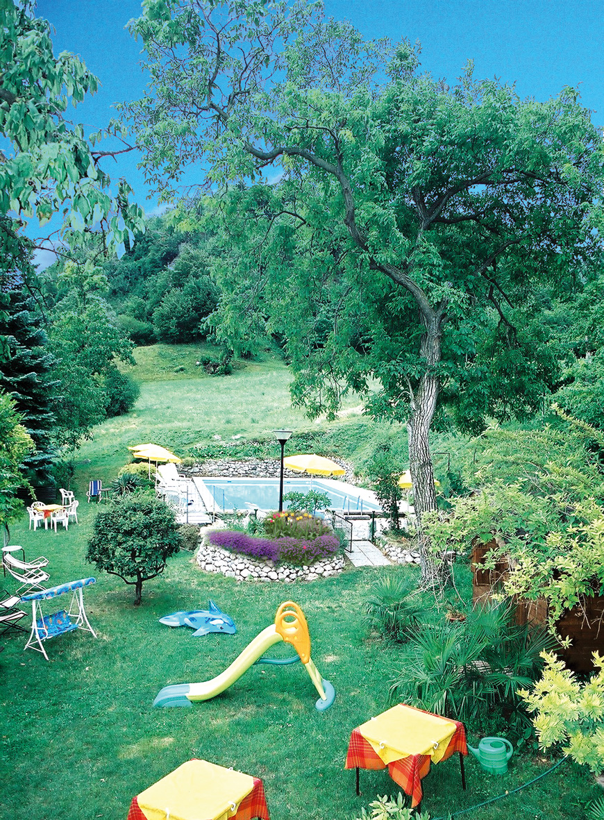 Al centro del giardino del nostro Hotel, si trova la bella piscina con vista sulle montagne e i boschi che la circondano . La zona solarium si trova accanto alla piscina arredata con numerosi sdraio e anche con alcuni lettini , dove si può godere di un po’ di meritato relax dopo una giornata di sport o di escursioni nelle nostre montagne.