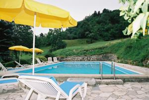 Al centro del giardino del nostro Hotel, si trova la bella piscina con vista sulle montagne e i boschi che la circondano.